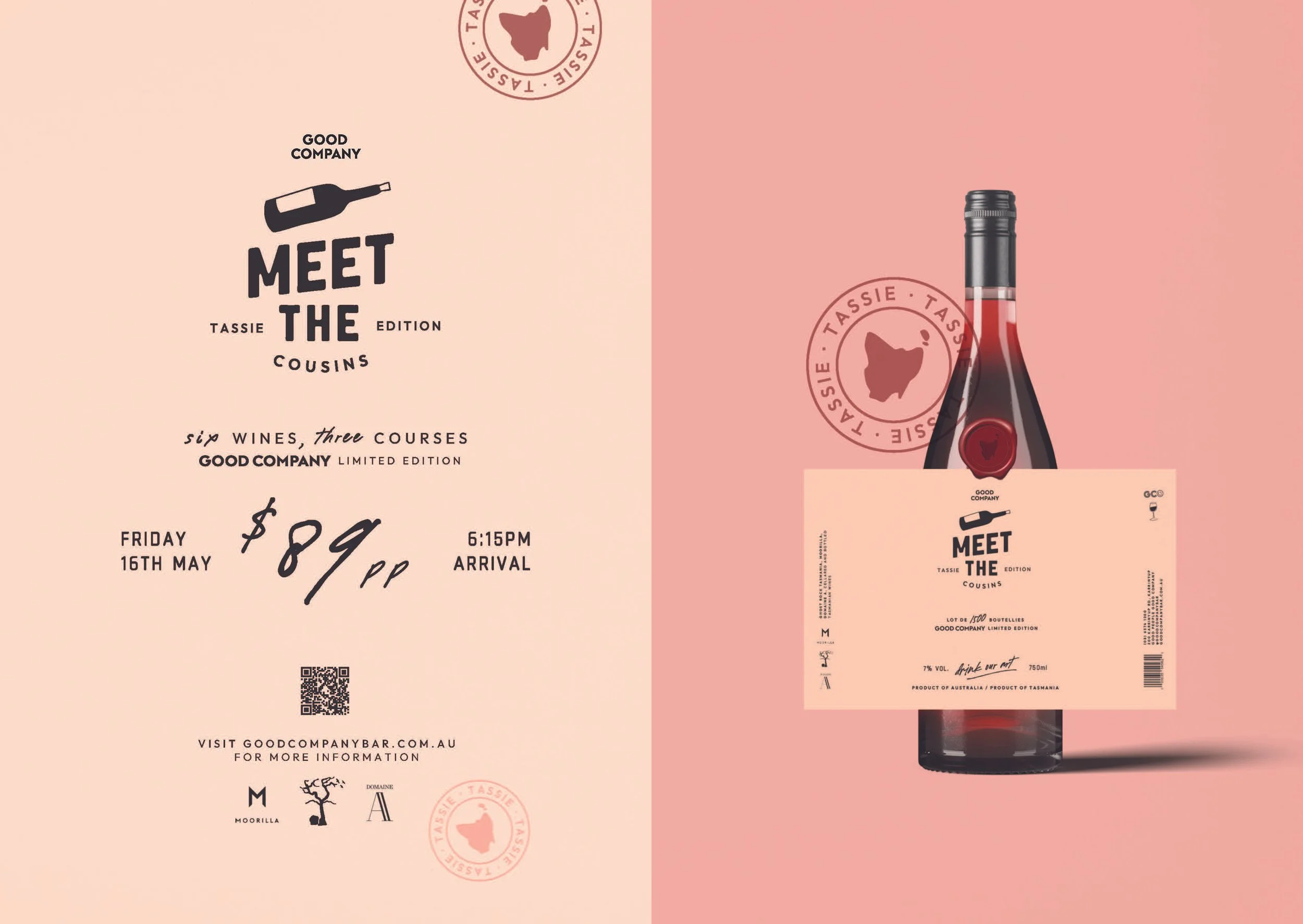 My role focused on translating this concept into a cohesive, guest-facing experience through design and copy. The dinner featured a three-course, share-style menu paired with six Tasmanian wines, supported by clear, approachable messaging that balanced education with a relaxed dining atmosphere.